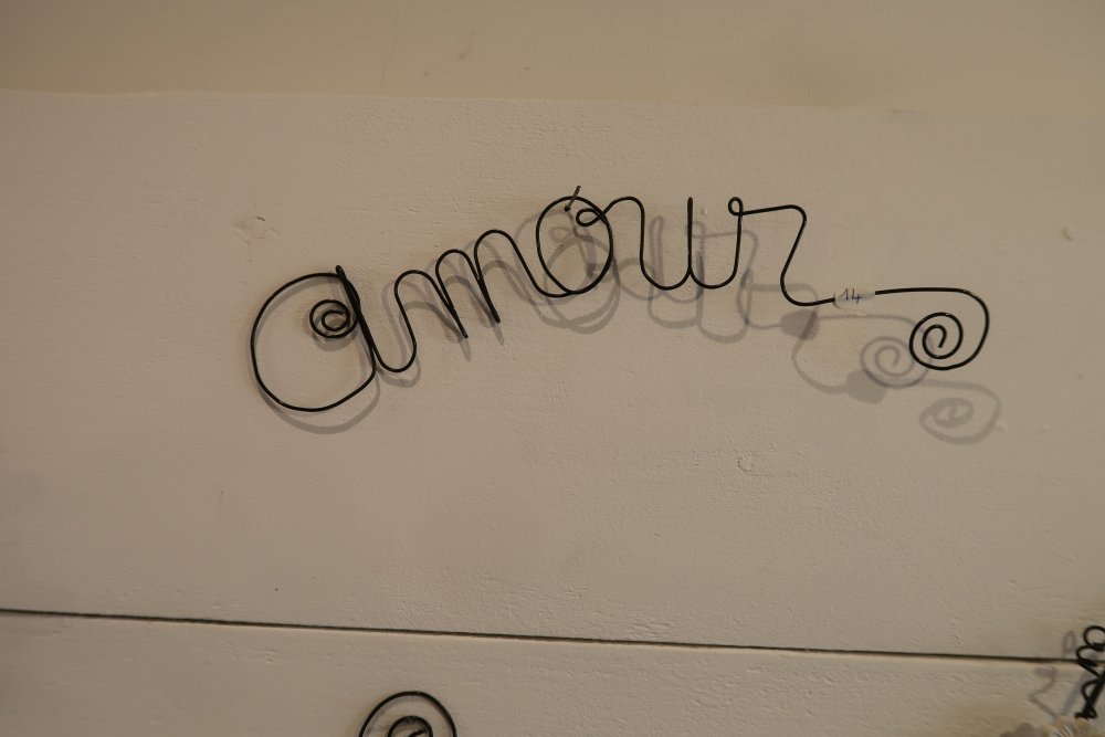 M.B. : « Pour des créations plus récentes, j’ai décidé d’employer du « fil de fer recuit », pour créer des couronnes, des fleurs, ou même de simples mots que l’on apposera, aussi, sur un mur…