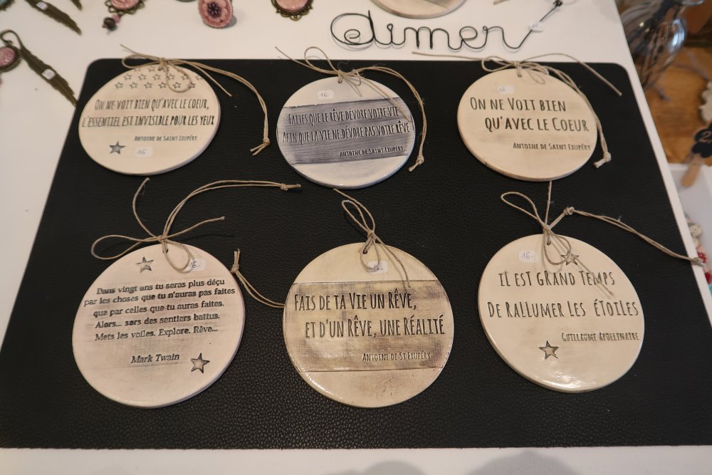 Certaines de mes créations nécessitent l’emploi de moules spécifiques.. mais je dois dire que, pour la plus grande majorité d’entre eux, je fais appel à quelqu’un de proche, dans mon entourage, qui me réalise un nombre important de moules, et aussi de tampons ( qui me servent à apposer du texte sur mes créations… ).