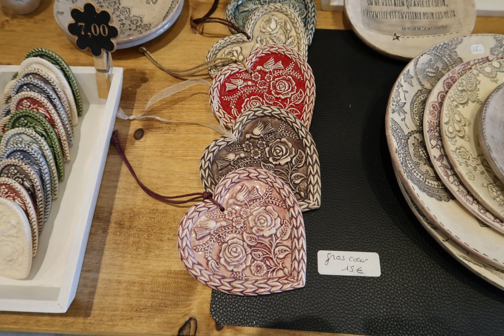 M.B. : « J’ai commencé assez vite, oui, et je vais d’abord choisir de me spécialiser dans les objets de décoration. Je n’ai pas voulu partir dans la création d’objets « utilitaires » car, mais c’est mon point de vue seulement, je craignais que la faïence ne soit un matériau trop fragile. Donc, je ne me « sentais pas »…