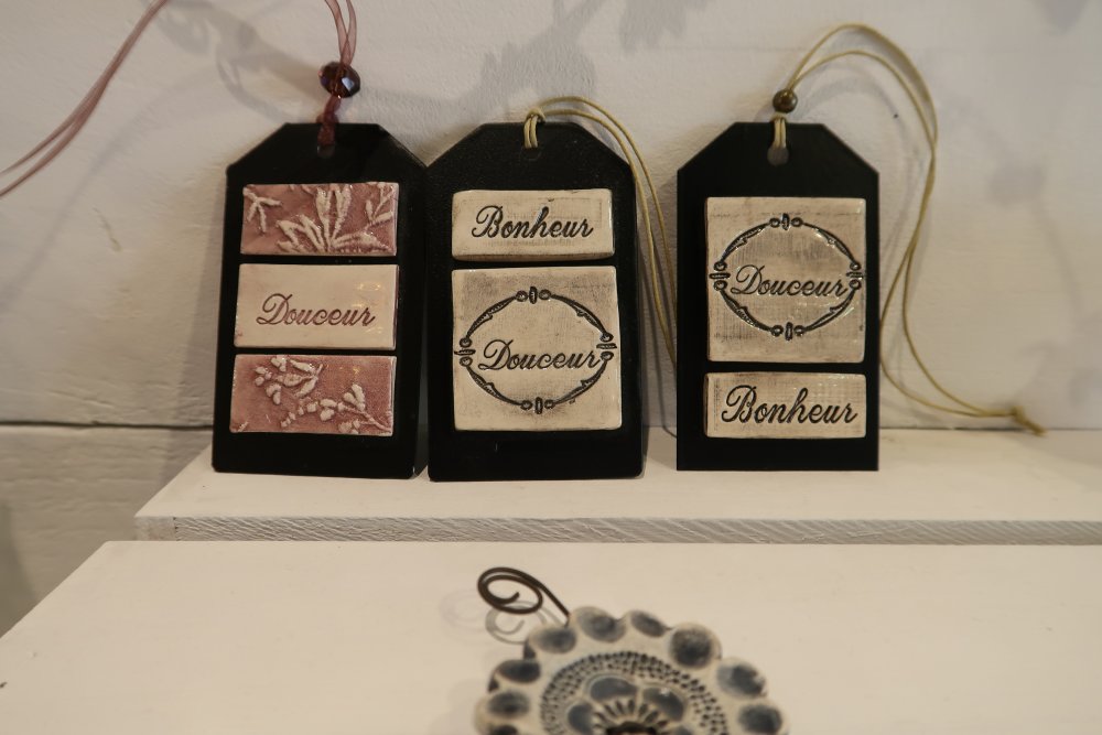 Sa famille se partage entre la Drôme et l’Ardèche. Et si, dans sa vie, elle a connu divers emplois, sans rapport avec le monde artistique, elle a souhaité terminer sa carrière sur une voie plus « poétique », en créant divers objets en mosaïque, comme en céramique… Découverte.